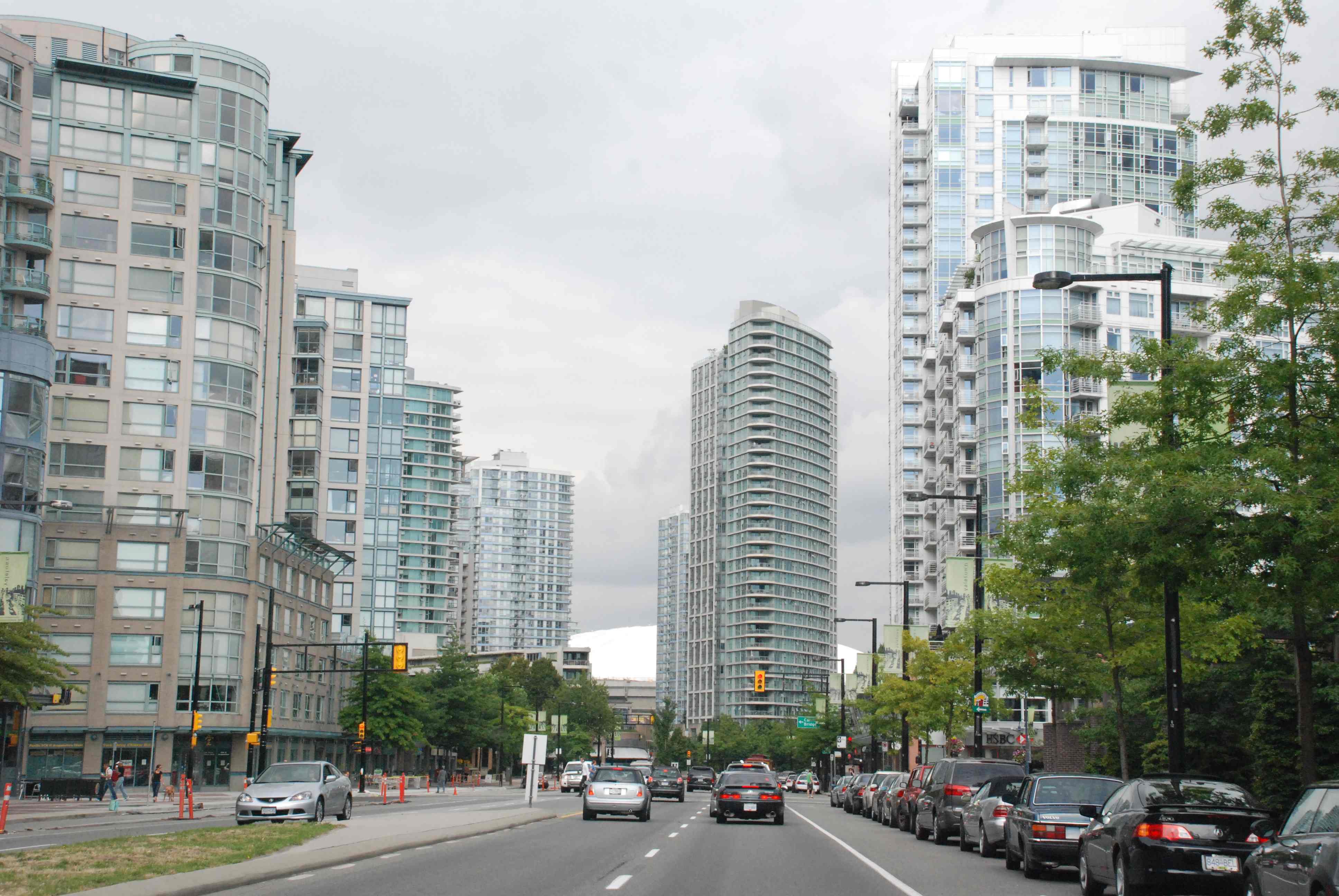 L’arribada a Vancouver és molt diferent a la de les ciutats dels Estats Units, on l’autopista et deixa a poca distància del destí on vols anar, ja que hi ha un munt d’autopistes que arriben a tot arreu. L’autopista a Vancouver acaba al passar un pont, i aleshores entres a l’entremat urbà com qualsevol altra ciutat. És una manera de començar a veure la fesomia de la ciutat: les cases, els jardins, la gent que hi viu… Passem per una zona de casetes unifamiliars modestes, poc a poc les cases són més grans envoltades per altes tanques de xipresos i vegetació, aquí les cases ja són més tipus xalet, devem estar a la zona alta de la ciutat. El carrer per on passem és ample, amb molts cotxes i les cruïlles amb els semàfors penjats d’un munt de cables. Continuem direcció el centre de la ciutat…