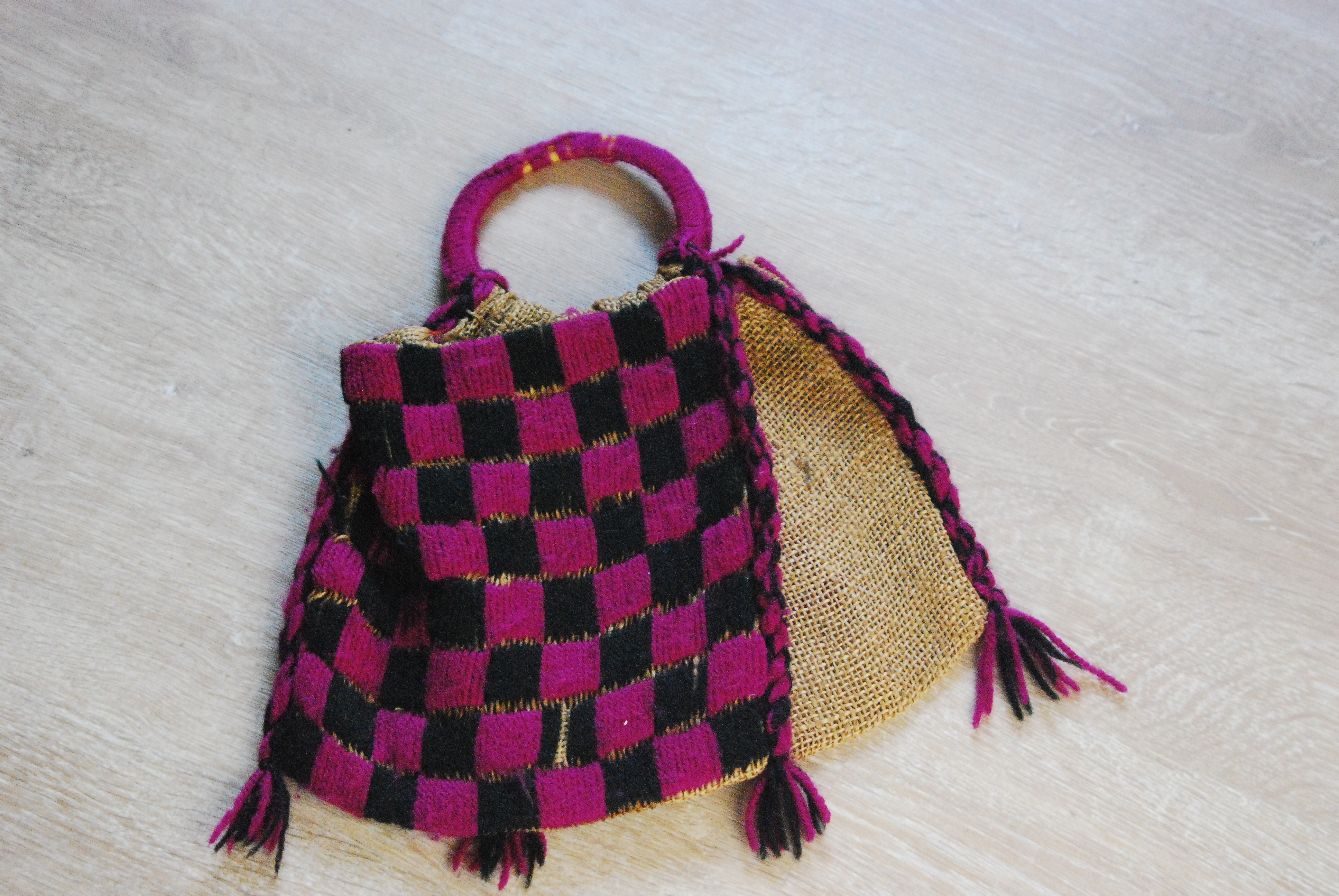 També feiem labors amb arpillera: decoràvem coixins fent dibuixos geomètrics. Jo un any vaig fer aquestes precioses alforges! El bonic és que la meva mare s’atrevia a lluir-les fent-les servir de bolso!