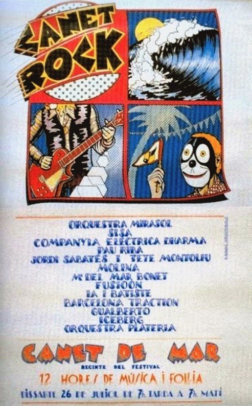 Així doncs, el 26 de juliol de 1975, amb el dictador Francisco Franco encara viu, es va fer el primer festival Canet Rock, amb artistes com Maria del Mar Bonet, Pau Riba o una incipient Companyia Elèctrica Dharma, que va omplir l’escenari amb capgrossos i gegants en col·laboració amb la companyia teatral els Comediants. Més enllà de tots els espectacles que es van fer a l’icònic escenari construït sobre un monticle de sorra, al Pla d’en Sala també es va instal·lar una fira amb estands dedicats a propostes tan eclèctiques com la revista autoeditada El Rrollo enmascarado o al culte Hare Krixna. “Va ser un festival pioner en molts aspectes, perquè ja s’havien fet concerts a l’aire lliure, però no que duressin dotze hores i que tinguessin aquesta dimensió i repercussió”, explica Putx. Hi van assistir 25.000 persones que buscaven escapar-se del conservadorisme latent en la societat. “S’hi van aplegar dissidències que tenien un vector polític evident, perquè la dictadura era ben vigent, però que anaven més enllà: eren dissidències vitals. Va ser un oasi de llibertat fictícia. En aquell espai, durant unes hores, va semblar que Franco fos mort”, explica.