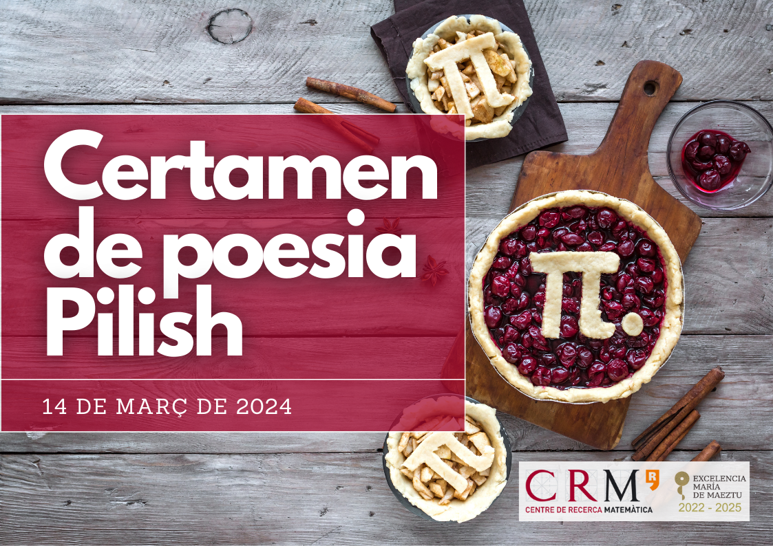 des del Centre de Recerca Matemàtica (CRM) us convidem a celebrar aquest proper Dia Internacional de les Matemàtiques / Dia de π (dijous 14 de març) amb un Certamen de Poesia en Pilish obert a tothom.