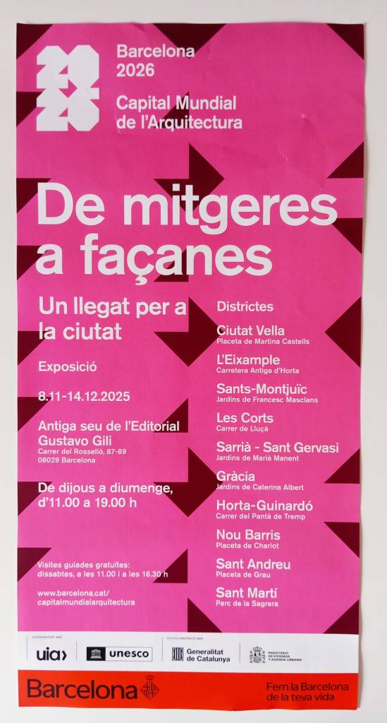 En el marc de la nominació de Barcelona com a Capital Mundial de l’Arquitectura 2026 per la UNESCO-UIA, l’organització Fundació Mies van der Rohe i l’Ajuntament de Barcelona llancen aquest concurs internacional d’idees per remodelar deu parets mitgeres, repartides pels deu districtes de la ciutat, amb l’objectiu de deixar un llegat durador a Barcelona, i fa una crida a la comunitat mundial de joves arquitectes a participar-hi.